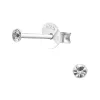 2 mm kristalli nappikorvakorut i hopea kanssa kiiltävä pinta ja 2 tasapintainen harmaata kristallia.