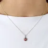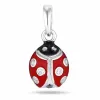 leppäkerttu riipus hopeaa kiiltävä pinta ja tasapintainen punainen emalji ja tasapintainen musta emalji ja viistehiottu valkoinen zirkoni.
