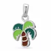 palmu riipus hopeaa kiiltävä pinta ja tasapintainen ruskea emalji ja tasapintainen vihreä emalji ja tasapintainen vaaleanvihreä emalji.