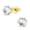 6 mm vedenkestävät nappikorvakorut i kullattu teräs kanssa kiiltävä pinta ja 2 viistehiottua valkoista zirkonia.