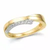 abstrakti timanttisormus 14 karaatin kulta ja valkokultaa kanssa kiiltävä pinta ja 11 briljanttihiottua timanttia Wesselton/SI