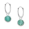 amatsoniitti rengas i hopea kanssa kiiltävä pinta ja 2 viistehiottua vihreää amatsoniittia.