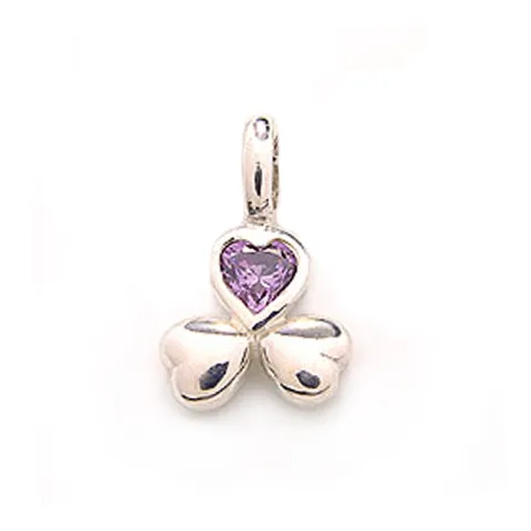 kolmiapila riipus hopeaa kiiltävä pinta ja 1 viistehiottua lilaa zirkonia.