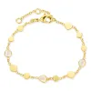 rannekoru kullattu messinki kiiltävä pinta ja viistehiottu valkoinen kristalli.