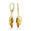 Lehti monivärisiä meripihka korvarenkaat kullattu hopea