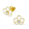 kukka nappikorvakorut i kullattua hopeaa kanssa kiiltävä pinta ja 2 viistehiottua valkoista zirkonia.