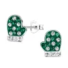 käsine vihreä lasten korvakorut i hopea kanssa kiiltävä pinta ja tasapintainen valkoinen kristalli ja tasapintainen vihreä kristalli.
