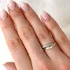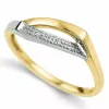 abstrakti briljanttisormus 9 karaatin kulta ja valkokultaa kanssa kiiltävä pinta ja 2 briljanttihiottua timanttia Wesselton/SI