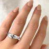 abstrakti sormus hopeaa kiiltävä pinta 2 viistehiottua valkoista zirkonia.