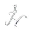 h-kirjain zirkoni riipus hopeaa kiiltävä pinta ja viistehiottu valkoinen zirkoni.