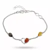 sydän monivärinen meripihka rannekoru hopeaa kiiltävä pinta ja 3 pyöröhiottua monivärinen moniväristä meripihkaa.