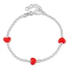 sydän rannekoru hopeaa riipus hopea kiiltävä pinta ja tasapintainen punainen emalji.