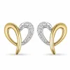 Sydän timantti nappikorvakorut 14 karaatin kultaa ja valkokul kanssa timantti