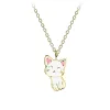 kissa kaulaketju kullattua hopeaa kiiltävä pinta ja tasapintainen valkoinen emalji ja tasapintainen pinkki emalji.