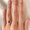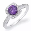 lila zirkoni sormus hopeaa kiiltävä pinta viistehiottu valkoinen zirkoni ja 1 viistehiottua lilaa zirkonia.