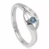 sininen sormus hopeaa kiiltävää ja harjattua pinta 1 viistehiottua sinistä safiiria ja 3 viistehiottua valkoista zirkonia.