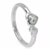 sydän sormus hopeaa kiiltävä ja hiekkapuhallettu pinta 1 viistehiottua vaaleansinistä zirkonia.