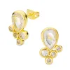 kirkas quartz korvarenkaat i kullattu messinki kanssa kiiltävä pinta ja tasapintainen valkoinen kirkas quartz.