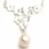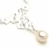 kukka helmi kaulaketju hopeaa kiiltävä ja hiekkapuhallettu pinta 1 valkoista makeanveden helmeä.