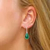 Pisara tummanvihreä kristalli korvarenkaat hopeoitu messinki
