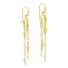 pitkät ketjukorvakorut i kullattu messinki kanssa kiiltävä pinta ja tasapintainen sininen amatsoniitti ja tasapintainen roosa kvartsi ja tasapintainen vihreä prehnite.