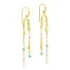 pitkät ketjukorvakorut i kullattu messinki kanssa kiiltävä pinta ja tasapintainen roosa kvartsi ja tasapintainen sininen jadekivi.