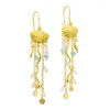 pitkät sininen ketjukorvakorut i kullattu messinki kanssa kiiltävä pinta ja tasapintainen monivärinen kuukivi ja tasapintainen roosa kvartsi ja tasapintainen sininen jadekivi.
