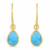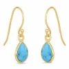 pitkät korvarenkaat i kullattu hopea kanssa kiiltävä pinta ja 2 viistehiottua vihreää turkiisia.