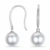 pitkät helmi briljanttikorvakorut 14 karaatin valkokultaa kanssa kiiltävä pinta ja 18 briljanttihiottua valkoinen timanttia Wesselton/ yhteensä 0,06 ct ja 2 valkoista makeanveden helmeä, AAA-GRADED.