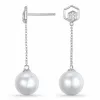 Pitkät helmi briljanttikorvakorut 14 karaatin valkokultaa kanssa timantti