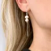 pitkät helmi ketjukorvakorut i hopea kanssa kiiltävä pinta 4 valkoista synteettisiä helmiä.