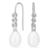 pitkät helmi korvarenkaat i hopea kanssa kiiltävä pinta ja 6 viistehiottua valkoista zirkonia 2 valkoista makeanveden helmeä.