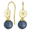 Päivänkakkara tummansininen kristalli korvakorukoukut kullattu hopea