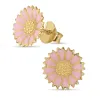 11 mm päivänkakkara pinkki nappikorvakorut i kullattu hopea kanssa kiiltävä pinta ja tasapintainen pinkki emalji.