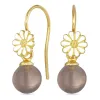Päivänkakkara savunvärinen kvartsi korvakorukoukut kullattu hopea