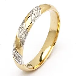 vihkisormus 14 karaatin kulta ja valkokultaa 6 briljanttihiottua timanttia Wesselton/VS yhteensä 0,048 ct.