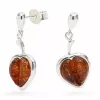 nappikorvakorut i hopeaa kanssa kiiltävä pinta ja 4 pyöröhiottua konjakki värjätty meripihkaa.