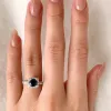 neliskulmainen sininen zirkoni sormus hopeaa kiiltävä pinta 1 viistehiottua sinistä zirkonia ja viistehiottu valkoinen zirkoni.