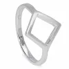 neliskulmainen sormus hopeaa kiiltävää ja harjattua pinta .