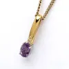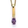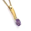 ovaali riipus 9 karaatin kultaa ja 9 karaatin valkokultaa kiiltävä pinta ja 2 viistehiottua valkoista zirkonia ja 1 viistehiottua lilaa ametistia.