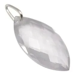 ovaali valkoinen kristalli riipus hopeaa kiiltävä pinta ja 1 viistehiottua valkoista kristallia.