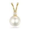 helmi timanttiriipus 14 karaatti kultaa kanssa kiiltävä pinta ja 1 briljanttihiottua valkoinen timanttia WESSELTON/SI 0,01 ct ja 1 valkoista makeanveden helmeä.