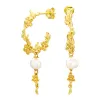 helmi rengaskorvakorut i kullattu messinki kanssa strukturoitu pinta 2 valkoista helmeä.