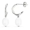 helmi rengaskorvakorut i hopea kanssa kiiltävä pinta ja 2 viistehiottua valkoista zirkonia 2 valkoista makeanveden helmeä.