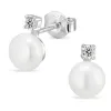 helmi korvarenkaat i hopea kanssa kiiltävä pinta ja 2 viistehiottua valkoista zirkonia 2 lohenvärinen makeanveden helmeä.