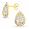 pisara zirkoni nappikorvakorut i kullattua hopeaa kanssa kiiltävä pinta ja viistehiottu valkoinen zirkoni.