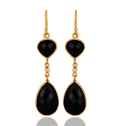 Pisaranmuotoinen onyx-kiveä korvarenkaat kullattua hopeaa