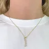 pitkä riipus 9 karaatin kultaa kiiltävä pinta ja 7 viistehiottua valkoista zirkonia.
