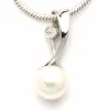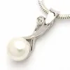 pitkä valkoinen helmi riipus rodinoitua hopeaa kiiltävä pinta ja 1 viistehiottua valkoista zirkonia ja 1 valkoista makeanveden helmeä.