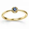 Pyöreä safiiri timanttisormus 14 karaatin kultaa 0,02 ct 0,163 ct